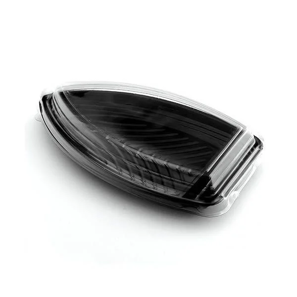 Embalagens tipo barca preta em diferentes tamanhos e formatos.