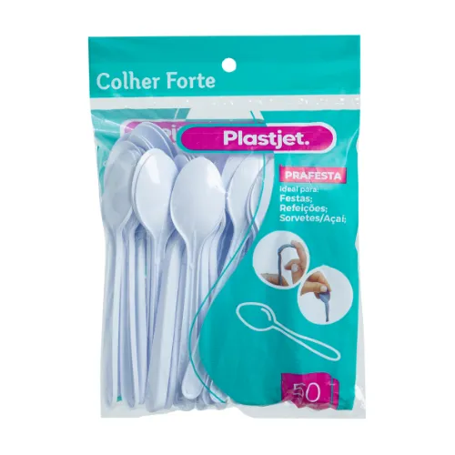 Colher Forte Plastjet disponível em cores variadas e tamanhos de 16cm e 19cm.