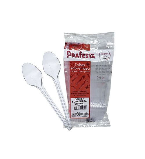 Colher Prafesta Sobremesa Cristal, embalagem com 1000 unidades.