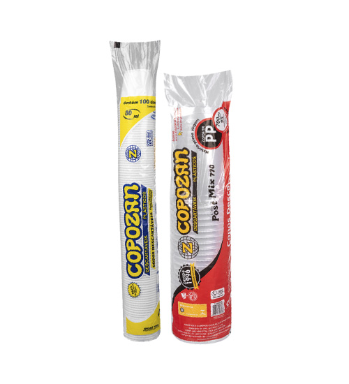 Copo Copozan PP, disponível em diversos tamanhos de 80ml a 770ml.