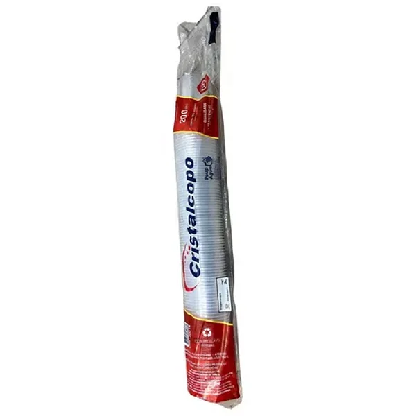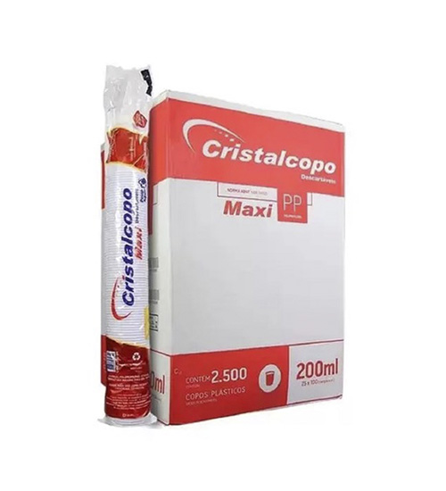 Copo Cristalcopo PP 200ml, embalagem com 100 unidades ou caixa com 25 pacotes.