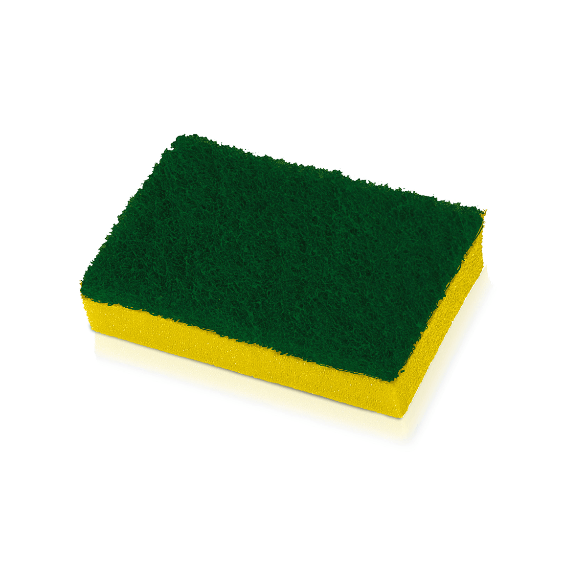 Esponja multiuso de dupla face nas cores verde e amarela, ideal para limpeza geral doméstica e profissional. Disponível em unidade individual ou pacote com 10 unidades.