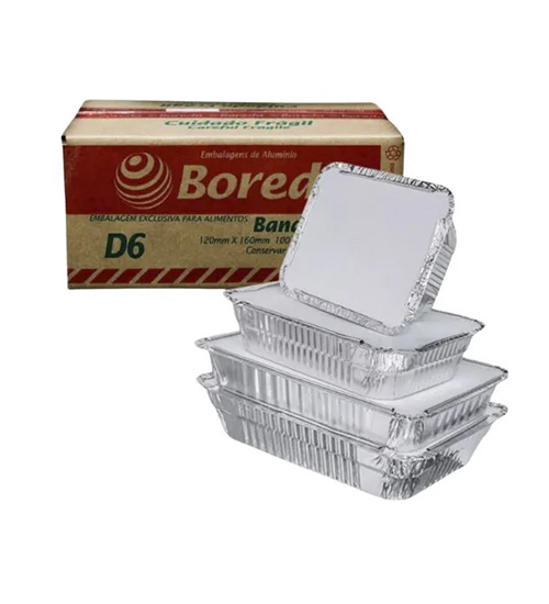 Linha Boreda de formas de alumínio, ideais para preparo e armazenamento de alimentos. Modelos como N120, N131, N170, N184 e B95 com variações de capacidade e embalagem.