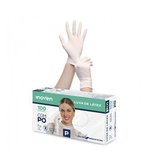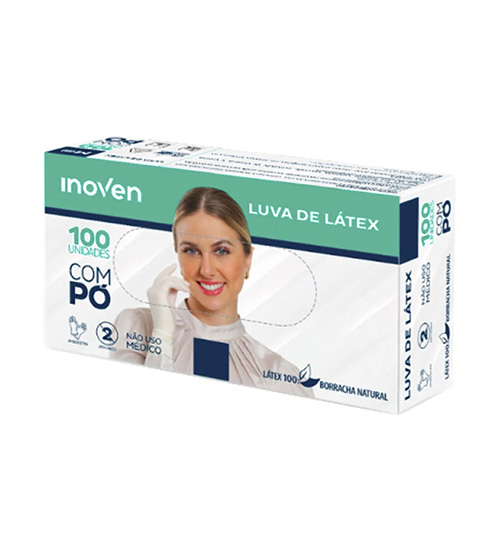 A Luva Inoven Látex é uma luva de procedimento fabricada em látex de borracha natural, com pó bioabsorvível. É utilizada em ambientes que requerem proteção e higiene, como consultórios e manuseio geral, oferecendo elasticidade e conforto. Variações (UN 100×01): Tam G, M, P.